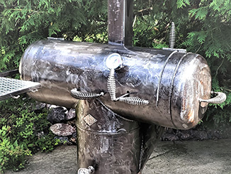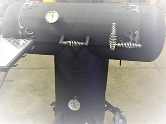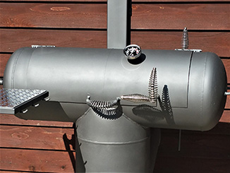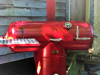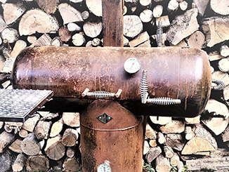 WoodFiredGrille offers (5) five distinct, unique finishes at this time; Black, Metallic Charcoal, Fire Engine Red, Rust, (natural red oxide developed from the reaction of iron and oxygen with air moisture) and Gunmetal, (raw burnished metal that mimics the appearance of gunmetal, achieved by burnishing the raw exterior surfaces to a smooth and bright gunmetal finish)